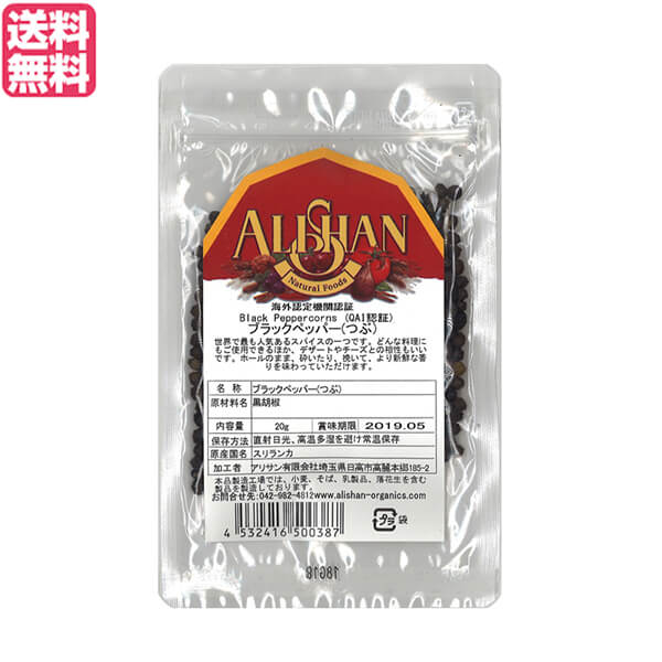 ブラックペッパー ホール 黒胡椒 アリサン ブラックペッパー(つぶ)20g 送料無料