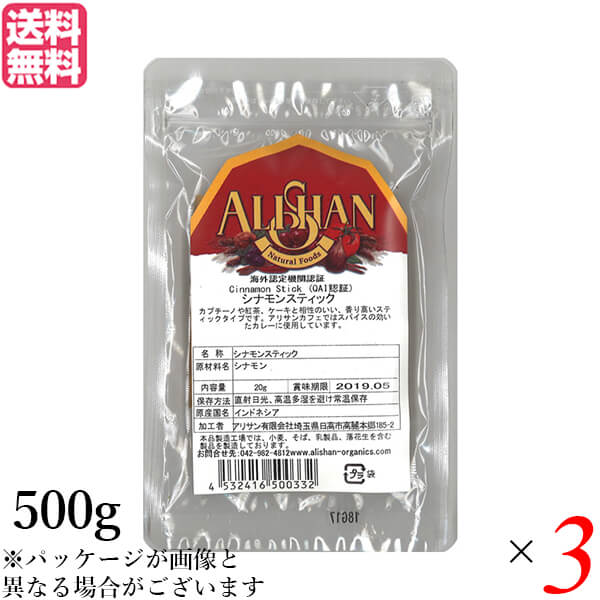 【3/16(月)9:59迄!ポイント5%+日曜5%】シナモン シナモンスティック チャイ アリサン シナモン スティック 500g 3個セット 送料無料