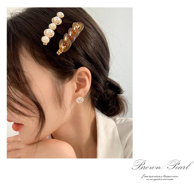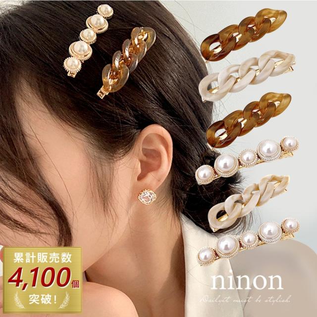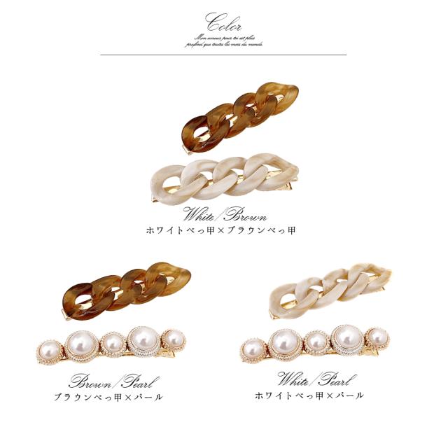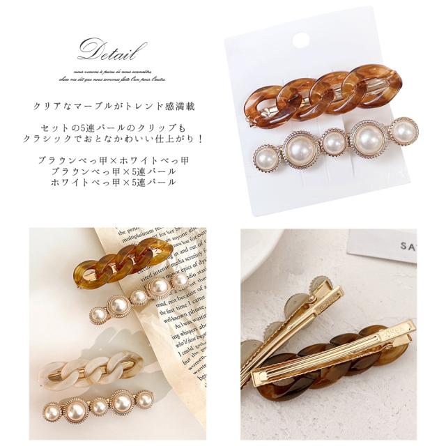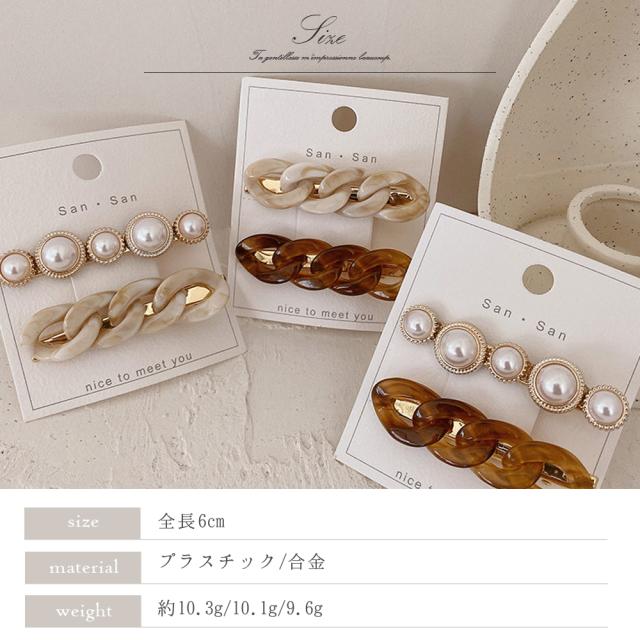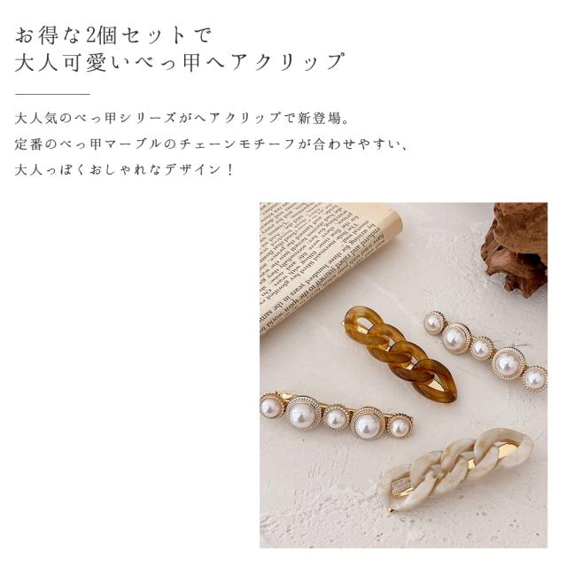ヘアクリップ レディース 2個セット クリア べっ甲 チェーン ヘア クリップ 大きめ パール 5連 シンプル 大人かわいい 通勤 通学 ヘアアクセサリー 結婚式 ゲスト 卒業式 入学式 入園 卒園 パーティー クラシック ベーシック かわいい 大人 おしゃれ 可愛い