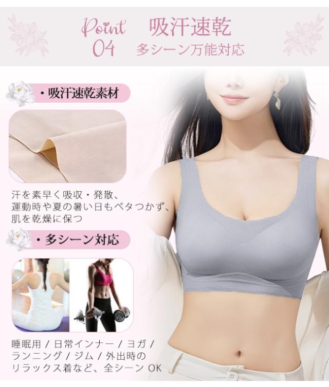 春新作 2点目30%OFF!シームレスブラ ナイトブラ ブラジャー ノンワイヤー パッド付き 取り外し可能 スポーツブラ 縫い目なし すっきり レディース 女性 肌着 素肌 ポイント消化