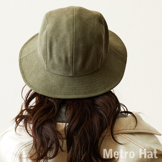 コットンキャンバス生地に「パラフィン加工」を施したメトロハットです。