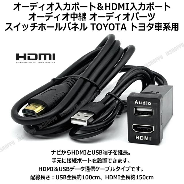 USBオーディオ入力ポート & HDMI入力ポート オーディオ 中継 ケーブル 延長 線 スイッチホールパネル TOYOTA 車 トヨタ車系用 送料無料