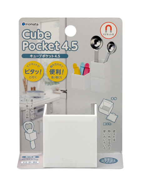 マグネット付ポケット キューブポケット4.5 ホワイト 4.5×4.8×高さ4.5cm (100円ショップ 100円均一 100均一 100均)