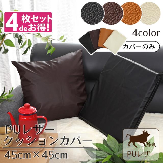 【4枚組】クッションカバー カバーのみ レザー調 フェイクレザー 撥水 PUレザー 背当て シートクッション用 カバー ブラック ブラウン キャメル アイボリー 合皮 合成皮革 飲食店や業務用