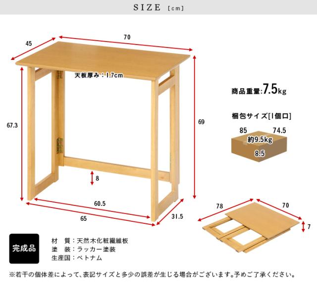 完成品 フォールディングテーブル Milan(ミラン) 幅70cm 3色対応 折りたたみ式デスク 学習机 学習デスク リビングデスク パソコンデスク 木製 コンパクト 省スペース シンプル おしゃれ モダン テレワーク 在宅勤務
