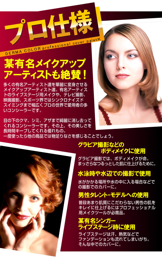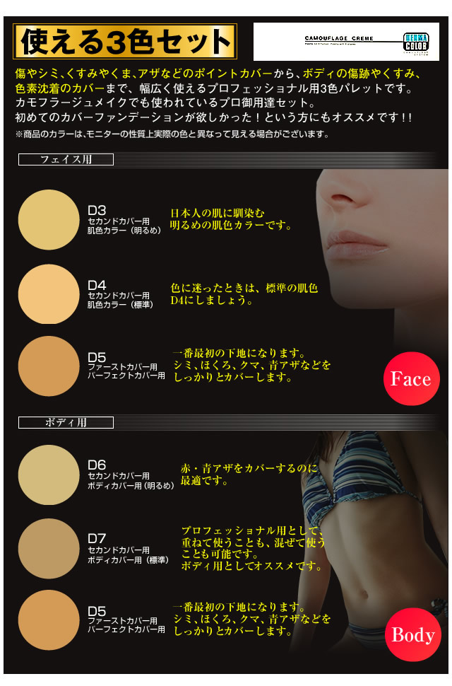 ダーマカラー パーフェクトコンシーラーパレット 3色 フェイス用/ボディ用 (メール便送料無料) 人気 タトゥー隠し 入れ墨 刺青 化粧下地 顔用 身体用 コンシーラー シミ クマ アザ 痣 隠し カモフラージュ ニキビ 跡 プール 温泉 妊娠線 ウォータープルーフ
