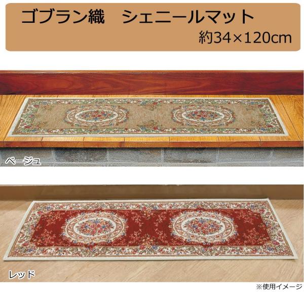 鹿田産業 ゴブラン織 シェニールマット 玄関マット 約34×120cm レッド・YAN13834RE (1096695)