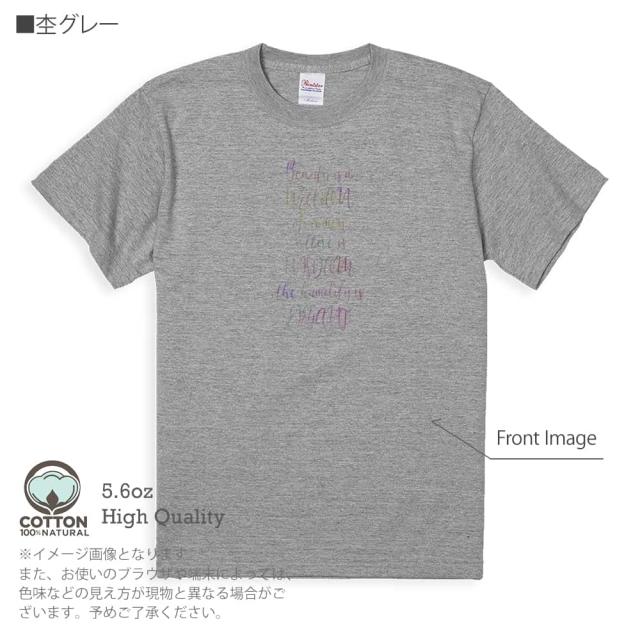 | 素 材 | ・半袖Tシャツ5.6oz(メーカー在庫の状況によって、5.0ozの場合があります) ・綿(コットン)100%(※杢グレーは綿80%、ポリエステル20%) ・商品の出荷時は、プリント時に使用した糊が付着しております(印刷面の周りなど)。一度洗濯してからご着用下さいませ(何度か洗っているうちに糊は取れます)。 |