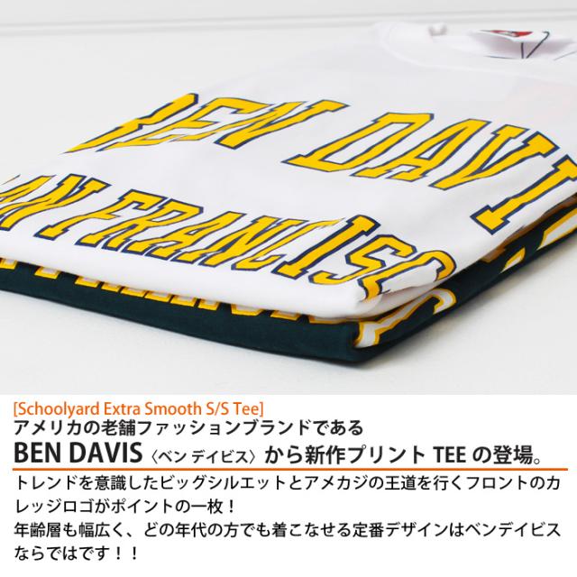 Tシャツ 半袖 メンズ プリントt BEN DAVIS ベンデイビス スクールヤード エクストラ スムース C-1580041 ベンデビ 人気 Tシャツ プリント カレッジ ビッグシルエット オーバーサイズ ゆったり アメカジ ストリート スケボー カジュアル