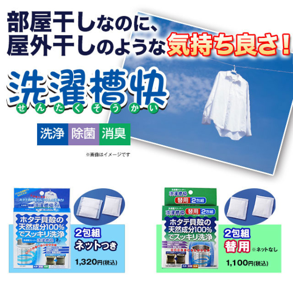 洗濯槽快 替用2包組 洗濯槽クリーナー ホタテ貝殻 洗濯槽 掃除 クリーナー 臭い ヌメリ 悪臭 カビ 黒カビ 除去 部屋干し臭 洗濯物 生乾き 部屋干し ニオイ対策 黄ばみ 防止