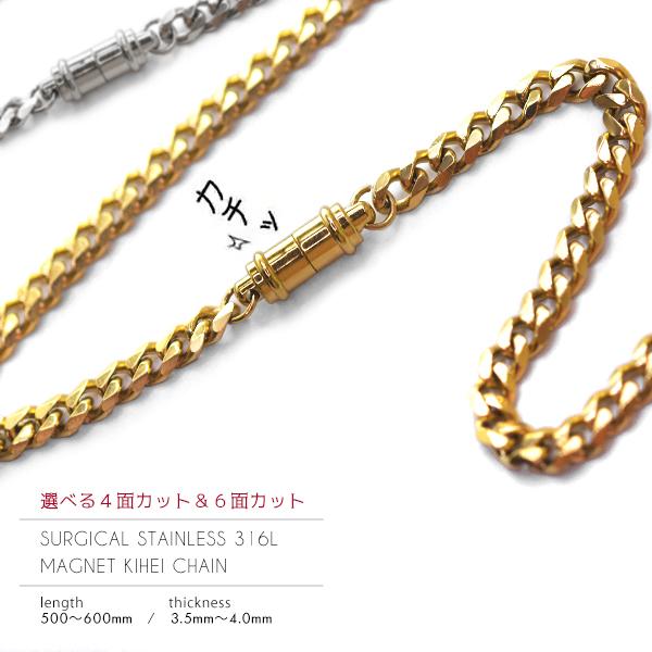 マグネットクラスプ 喜平 ネックレス 喜平ネックレスチェーン 6面カット 4面カットサージカルステンレス 316L 細 目メンズ キヘイ チェーンネックレス