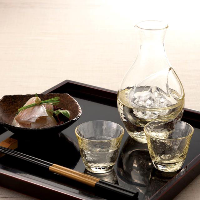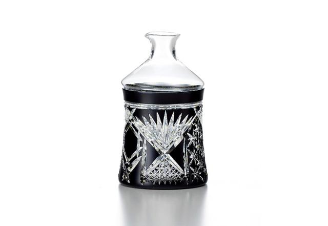 八千代切子 切子クーラー付き徳利 飛亀甲柄(墨) とっくり 日本酒 冷酒 酒器 ガラス 日本製 おしゃれ ブラック 黒 ギフト プレゼント 【送料無料】