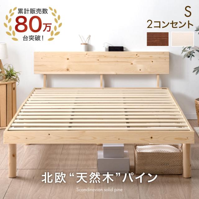 【13日0時〜P5%還元】 【80万台突破】 天然木 北欧パイン ベッド 宮棚&2口 コンセント付き シングルベッド ベッドフレーム すのこベッド すのこベット ベット ベットフレーム シングル