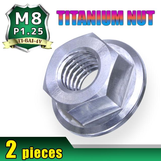 M8 P1.25 チタンナット フランジナット 2個セット 六角ナット シルバー 8mm ピッチ1.25 バイク スプロケット 車 自転車 カスタム 軽量化 交換 MTB MBX マウンテンバイク 競技車 レース セレート 13mmソケット チタン合金 Ti-6Al-4V 64チタン グレード5 オートバイ