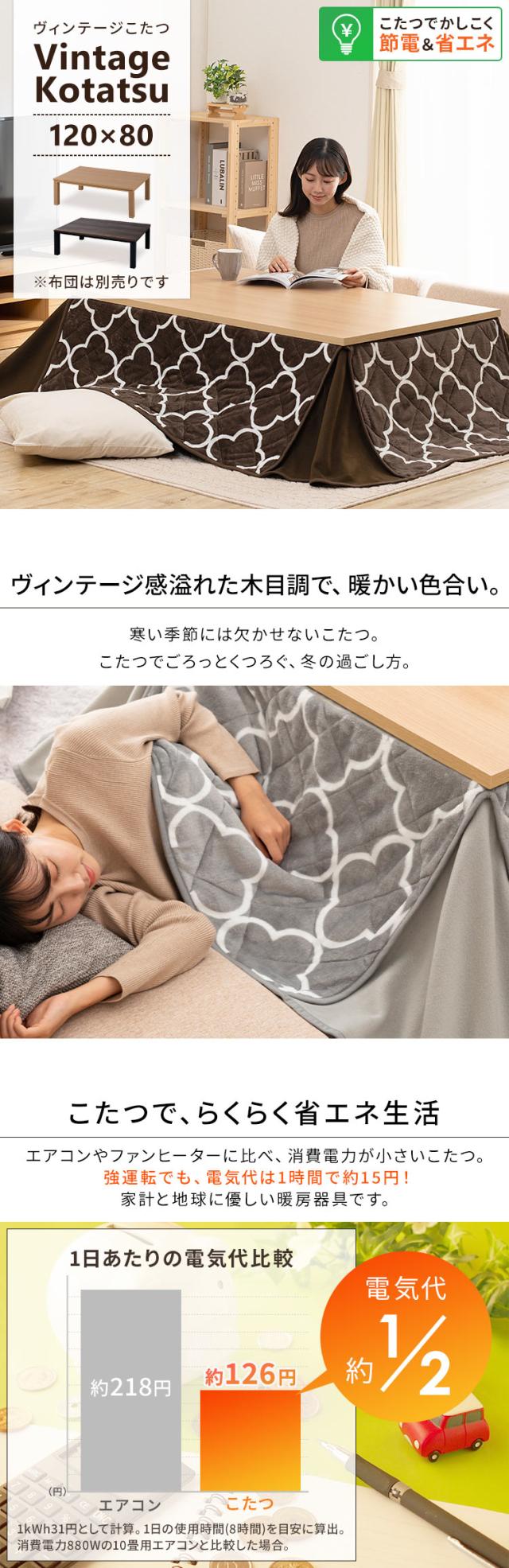★クーポンあり★ こたつテーブル 長方形 120×80cm こたつ テーブル 新ヴィンテージコタツ 本体 120×80cm SJ-K09-IR こたつ ヴィンテージこたつ コタツ 炬燵 ビンテージコタツ ヴィンテージコタツ 120×80 長方形 北欧 日本製ヒーター 送料無料