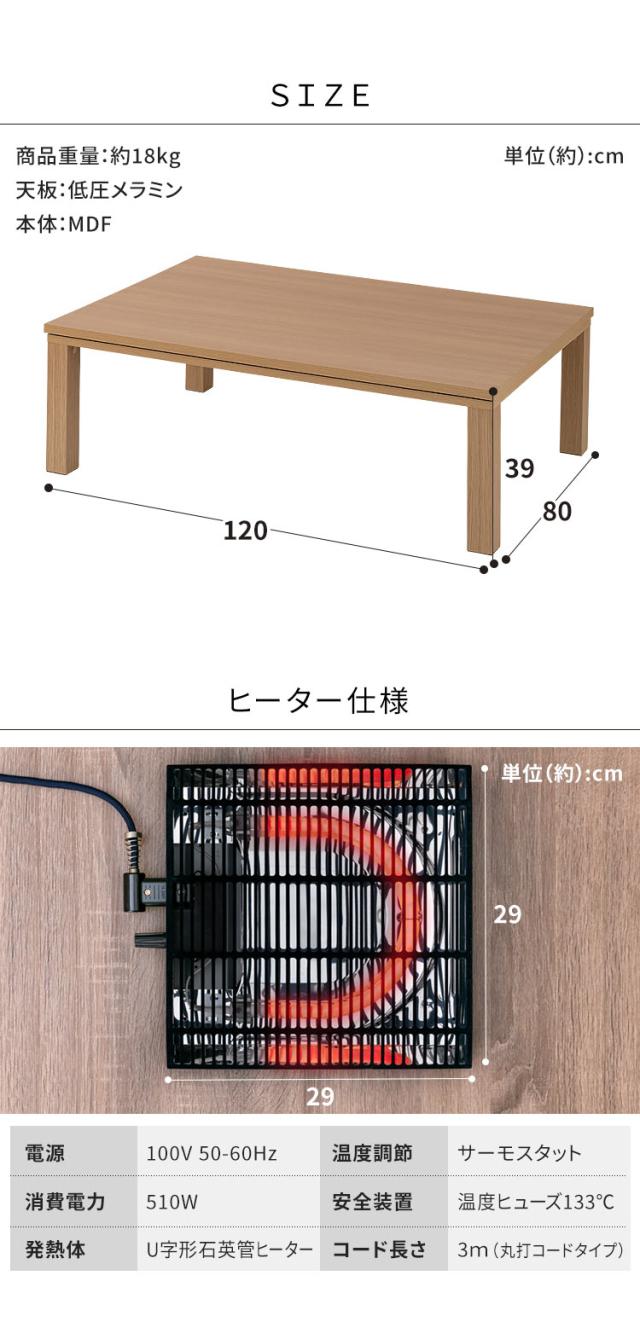 こたつ本体:幅約120×奥行約80×高さ約38.6