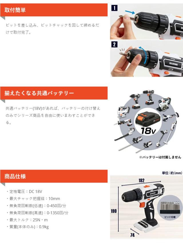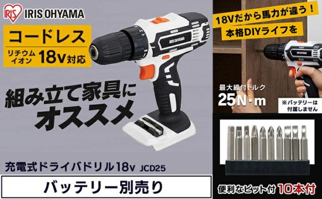充電式ドライバドリル18V JCD25-Z ドライバードリル ドリルドライバー ドリル ドライバ 電動 電気 充電式 18v 電動 工具 DIY 本体 バッテリー別売り 充電器別売り アイリスオーヤマ 送料無料