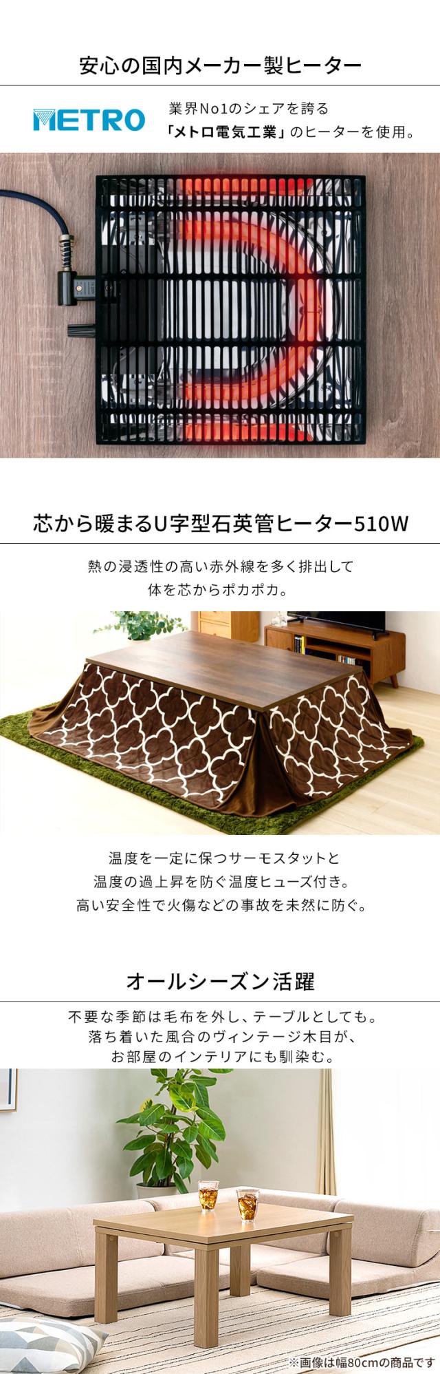 こたつ テーブル 新ヴィンテージコタツ 本体 120×80cm SJ-K09-IR こたつ ヴィンテージこたつ こたつテーブル 長方形 コタツ 炬燵 ビンテージコタツ ヴィンテージコタツ 120×80 北欧 送料無料
