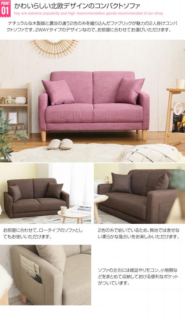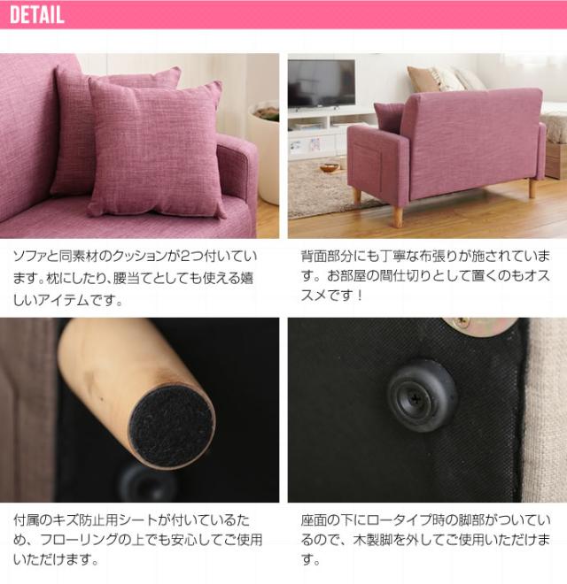 ソファ ソファー 2人掛け 2P ソファーベッド 2.5人掛け 二人掛け 北欧 ローソファー コンパクト 一人暮らし ポケット付き 収納付き おし