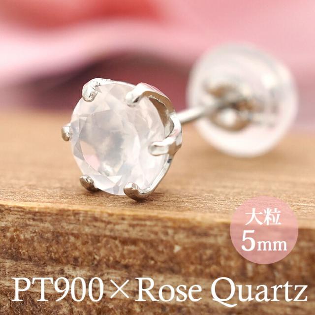 | セカンドピアス つけっぱなし プラチナ PT900 ローズクォーツ 5mm 大粒 ピアス 金属アレルギー対応 |