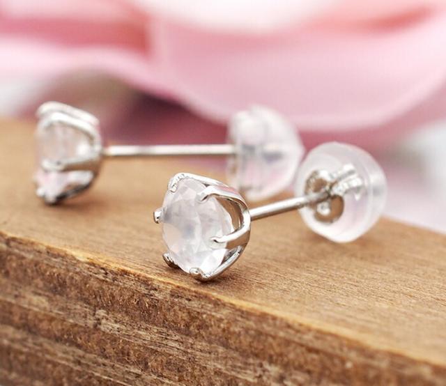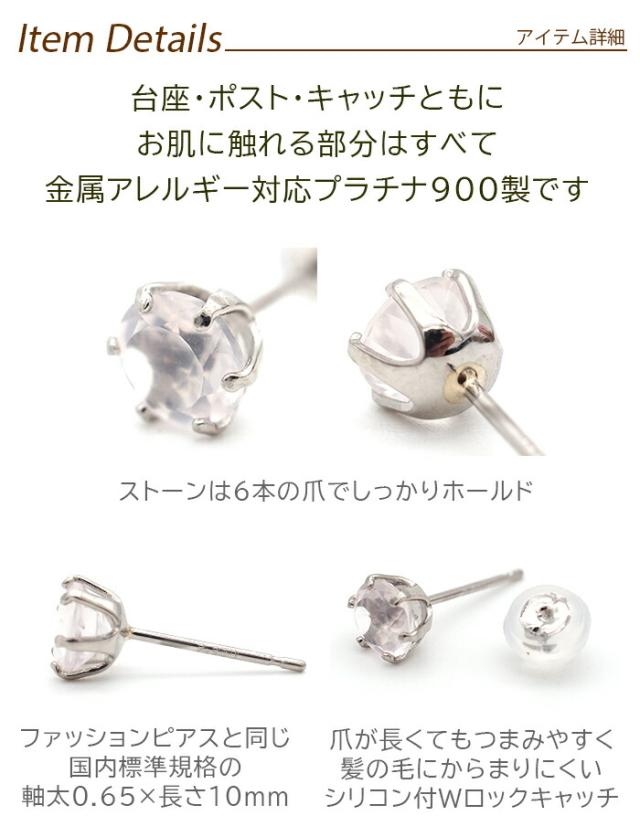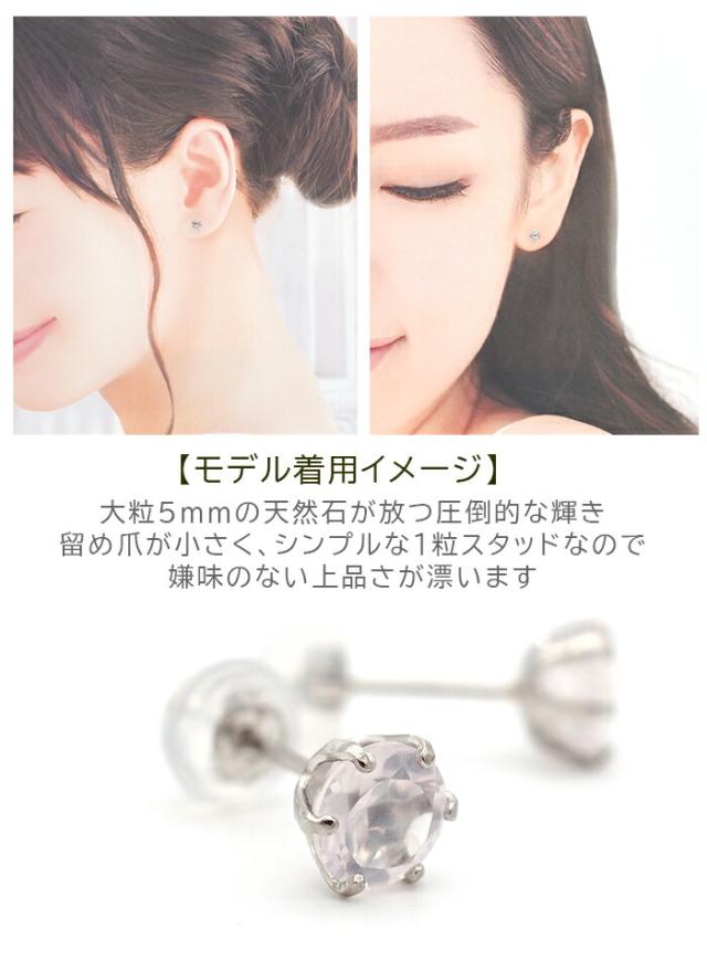 つけっぱなし ピアス プラチナ ローズクォーツ 大粒 5mm 天然石 誕生石 品質保証書つき 金属アレルギー対応 片耳 1個 日本製