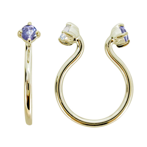イヤーカフ レディース フープ イヤリング おしゃれ 18k ノンホールピアス タンザナイト リバーシブル ピンクゴールド 母の日