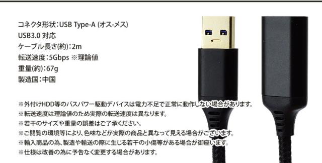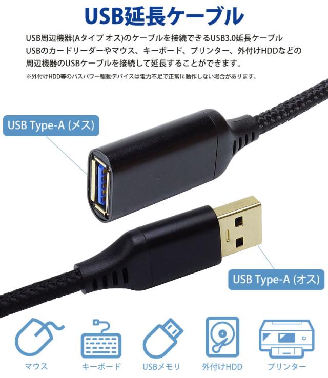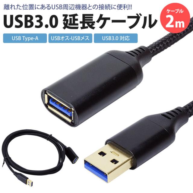 USB 3.0 延長ケーブル 2m Type-A オス メス USB A 延長コード USBケーブル 高速転送