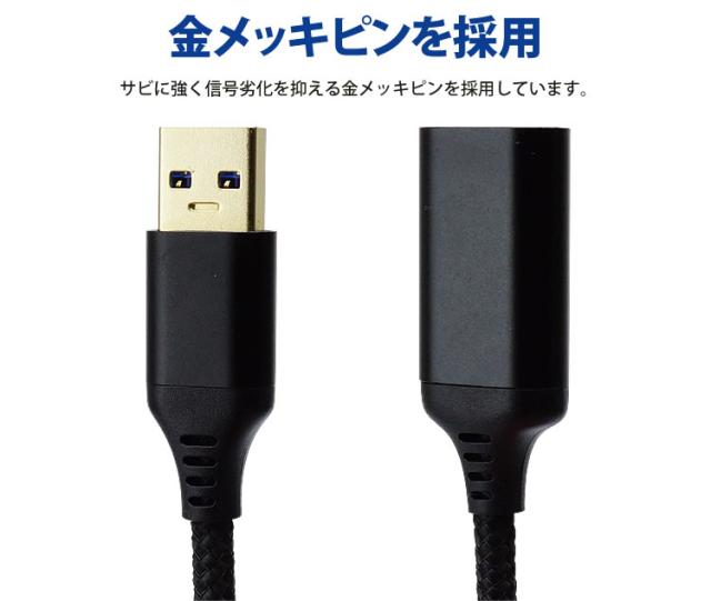 USB周辺機器(Aタイプ オス)のケーブルを接続できるUSB3.0延長ケーブル