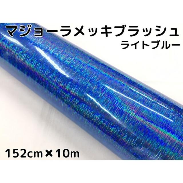 カーラッピングシート マジョーラメッキブラッシュ152cm×10mライトブルー ホログラム調ヘアラインメッキ カーラッピングフィルム耐熱耐水曲面対応裏溝付