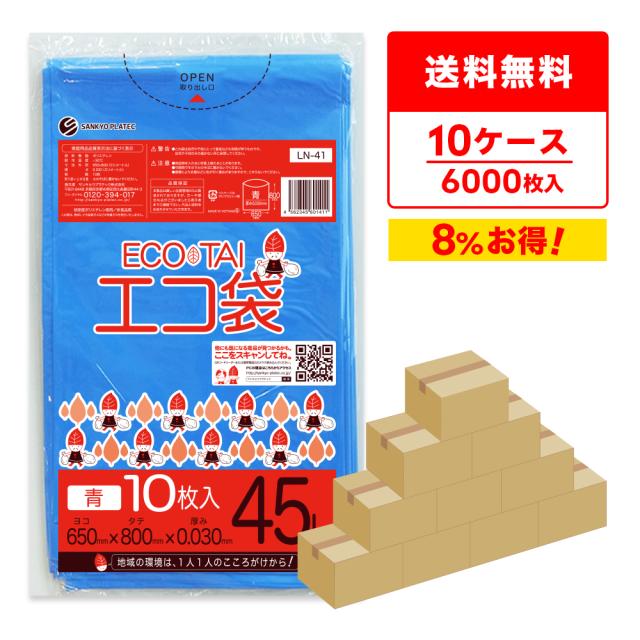 ポリ袋 ゴミ袋 45リットル 青 65x80cm 0.030mm厚 10枚x60冊x10箱 LN-41-10 ごみ袋 カラーポリ袋 袋 45l ブルー 業務用 分別 工作 送料無料 サンキョウプラテック