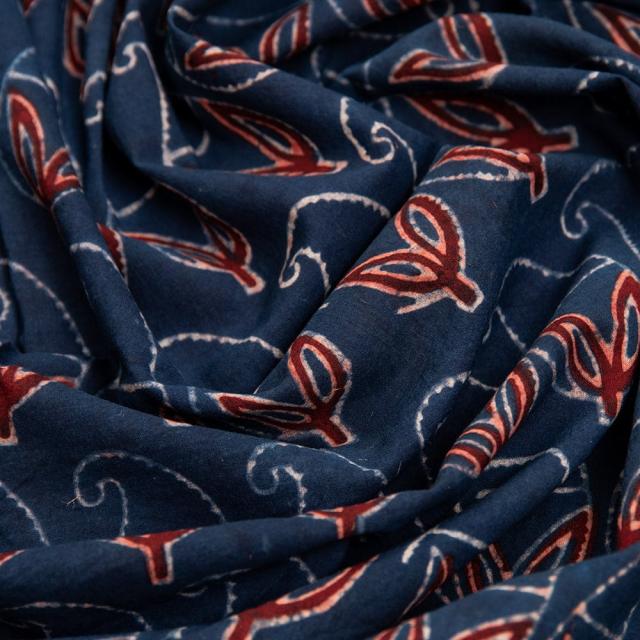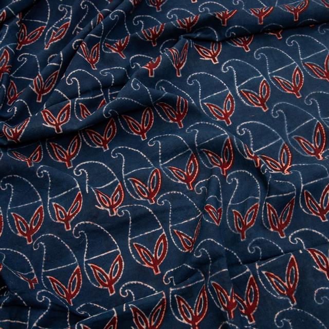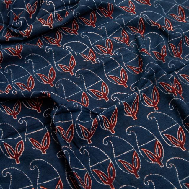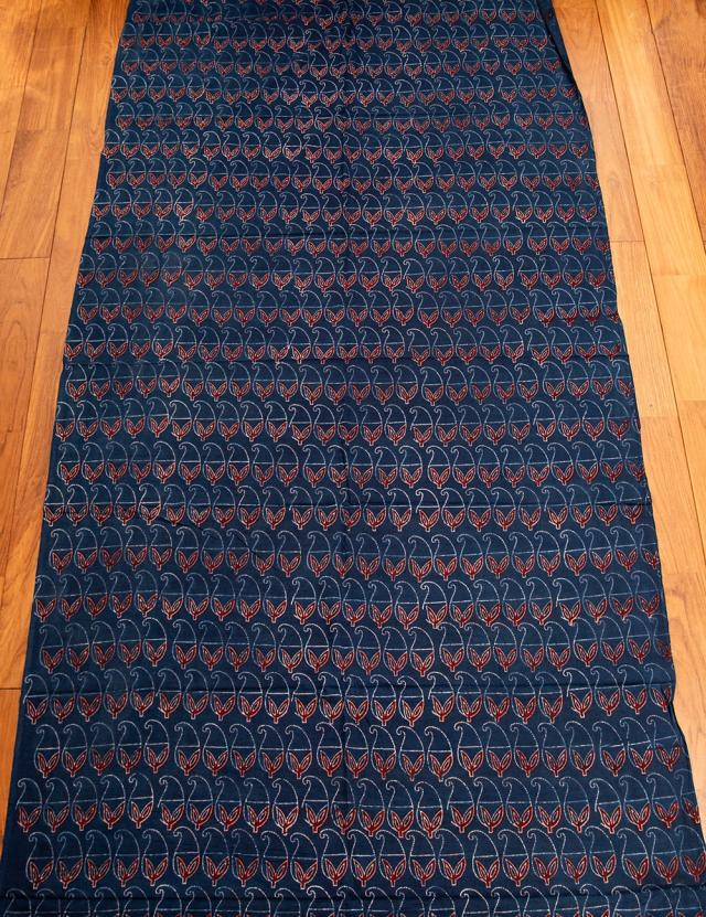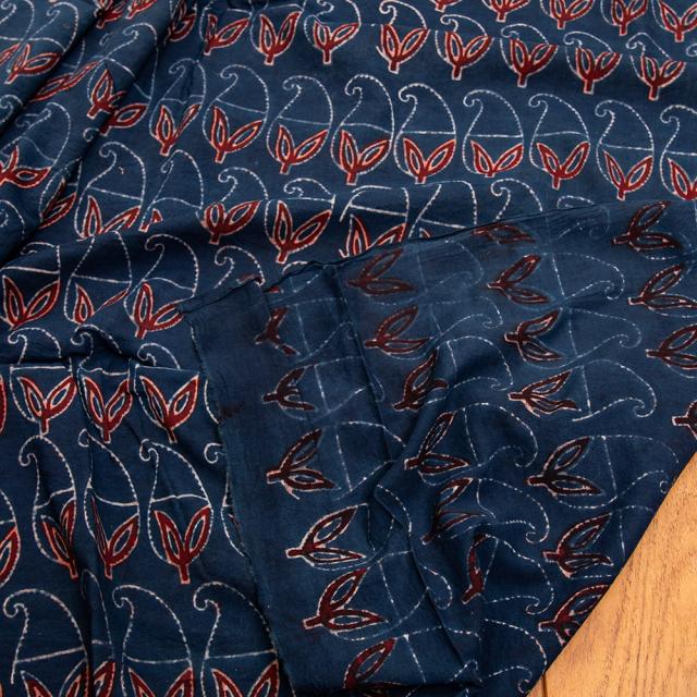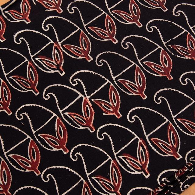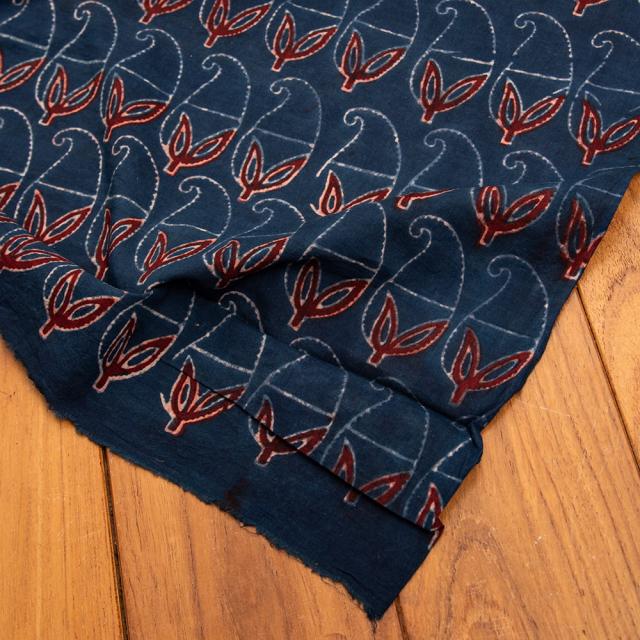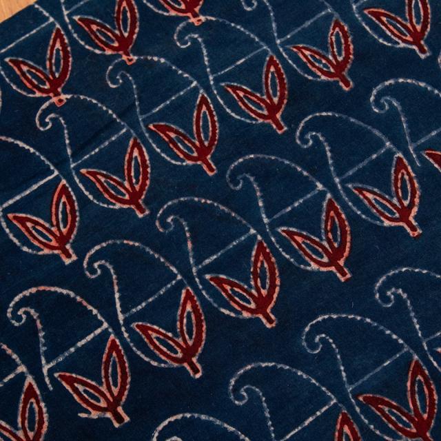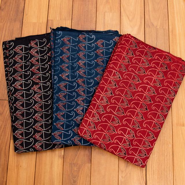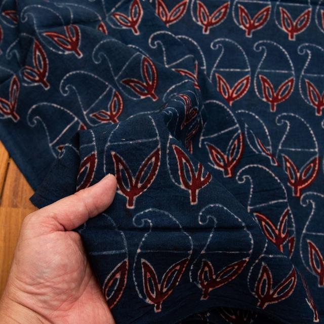 〔約6m 長尺布 3色展開】伝統息づくインドから 昔ながらの木版染めリーフペイズリー柄布 - 幅約107cm / 商用利用可、ウッドブロック、木版染め、ボタニカル、唐草模様、手芸、生地、切り売り、量り売り布、アジア布 手芸 布とファブリック 【インドとアジアンの布