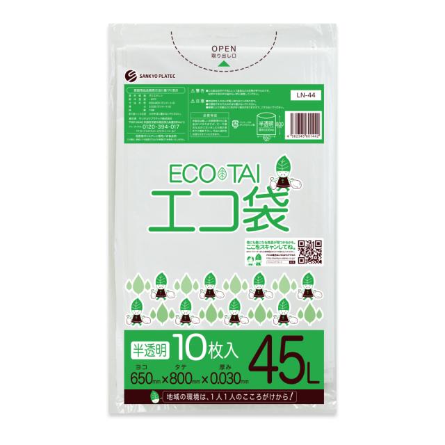ポリ袋 ゴミ袋 45リットル 半透明 65x80cm 0.030mm厚 10枚 LN-44bara /ごみ袋 袋 45l ホワイト