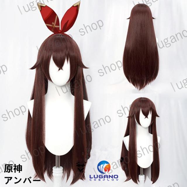 原神 げんしん アンバー 風 コスプレウィッグ+ネット ハロウィン イベント 仮装