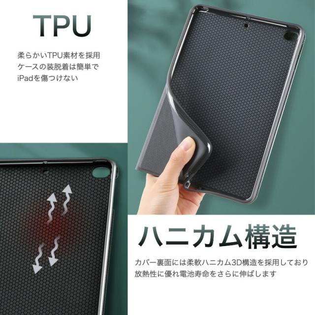 【携帯便利】超軽量、超薄型を備えたスマートケース、大切なタブレットをキズや衝撃から守ると同時にファッションを感じさせられます。薄型超軽量仕様ですので、厚めのケースと比較すると見た目のスマートさが際立ちます。手に持っても重さを感じることがありません。【科学的なデザイン】開口部が精確的ですべての機能へ自由にアクセスできます(カメラ、スピーカー、ポートなど)。スタンド機能が付きなので、横向きに立てかけて、動画視聴、ゲームなどに便利です。オートスリープ/ウェイクに対応します;マグネットによりカバーの開閉も容易です。【上質素材】ipad レザーケースは、上質な無害なレザーとやわらかなTPUインナーシェルを採用。 それは耐久性があり、タブレットを損傷することなく指紋や落下を防ぐことができます。 手元のデバイスを重視する方や、傷やほこりを付けたくない方に適しています。素材・PUレザー・TPU(ソフト素材)注意●タッチペンは付属しません。