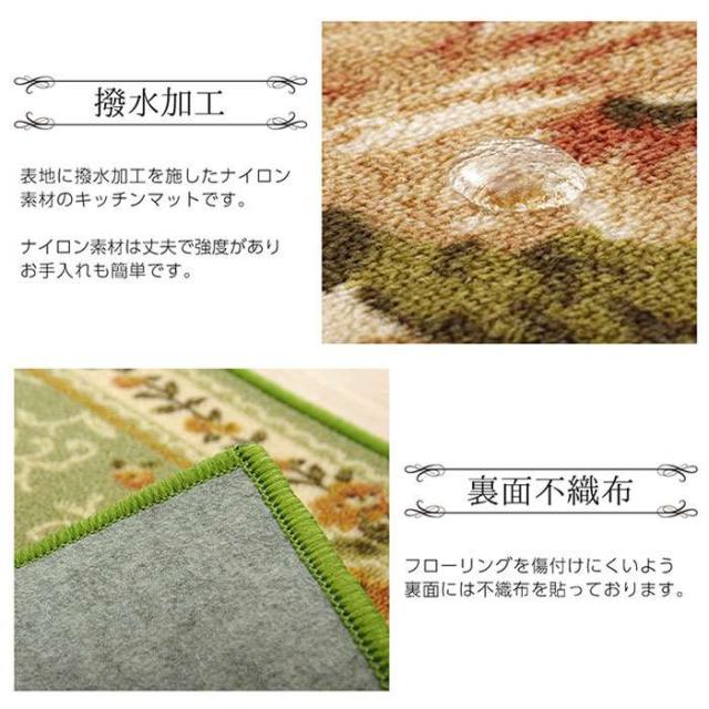 ■商品名:キッチンマット 台所マット ナイロンキッチンマット 44x120cm 花柄 撥水加工 キッチン 台所 速乾 エレガント インテリア 敷 裏面不織布