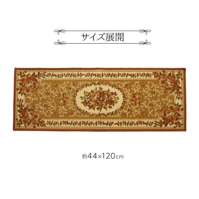 代引不可 キッチンマット 台所マット ナイロンキッチンマット 44x120cm 花柄 撥水加工 キッチン 台所 速乾 エレガント インテリア 敷 裏面不織布 IKEHIKO HSKY44120
