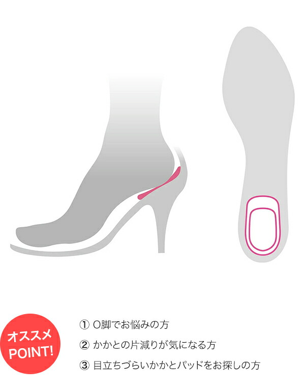外側を持ち上げたO脚用ヒールパッド。 |