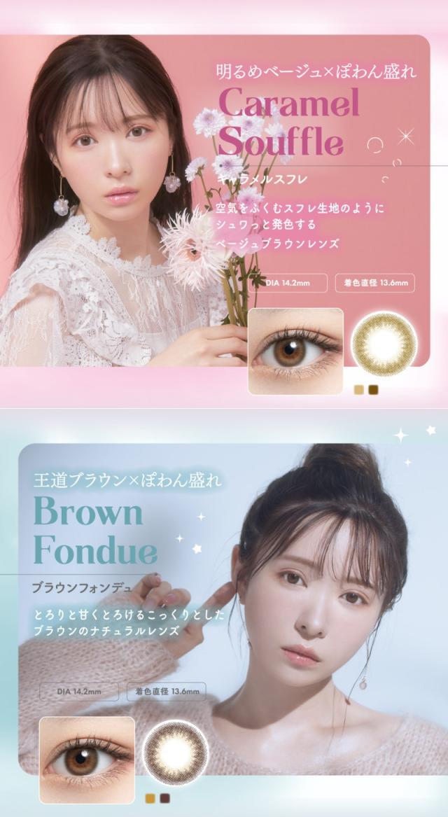 キャラメルスフレは、パッケージのリニューアル中です。現行品と変更品が混在する場合がございます。(レンズデザインに変更はございません。)