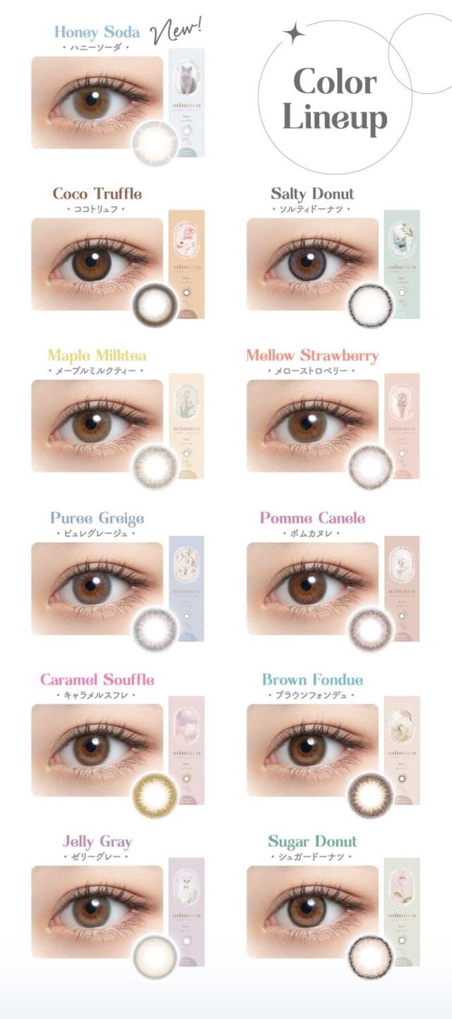 ・カラー展開:ハニーソーダ ココトリュフ ソルティードーナッツ メープルミルクティー メロ—ストロベリー ピュレグレージュ ポムカヌレ キャラメルスフレ ブラウンフォンデュ ゼリーグレー シュガードーナツ