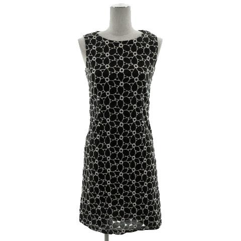 【中古】オットー OTTO ワンピース ひざ丈 ノースリーブ 花柄 刺繍 ブラック 黒 ホワイト 白 S レディース