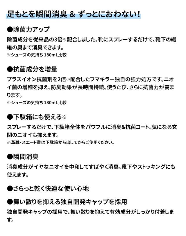 除菌成分を従来品の3倍※配合しました。靴にスプレーするだけで、靴下の繊維の奥まで消臭できます。