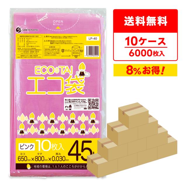 ポリ袋 ゴミ袋 45リットル ピンク 65x80cm 0.030mm厚 10枚x60冊x10箱 LP-40-10 ごみ袋 カラーポリ袋 袋 45l 業務用 分別 工作 送料無料 サンキョウプラテック