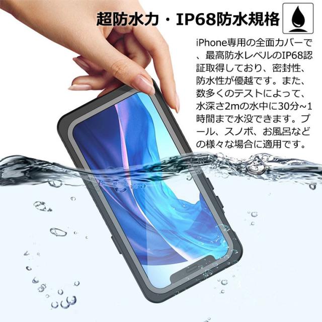 ■iPhone専用の全面カバーで、最高防水レベルのIP68認証取得しており、密封性、防水性が優越です。また、数多くのテストによって、水深さ2mの水中に30分~1時間まで水没できます。プール、スノボ、お風呂などの様々な場合に適用です。