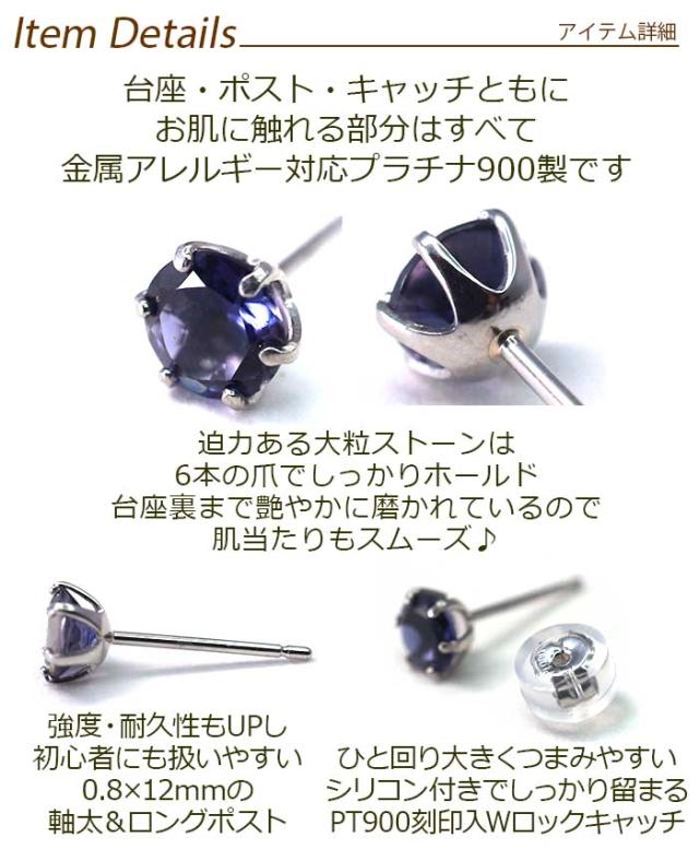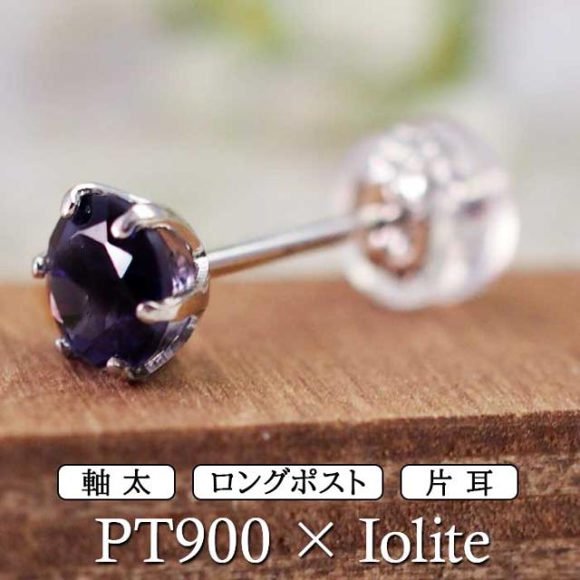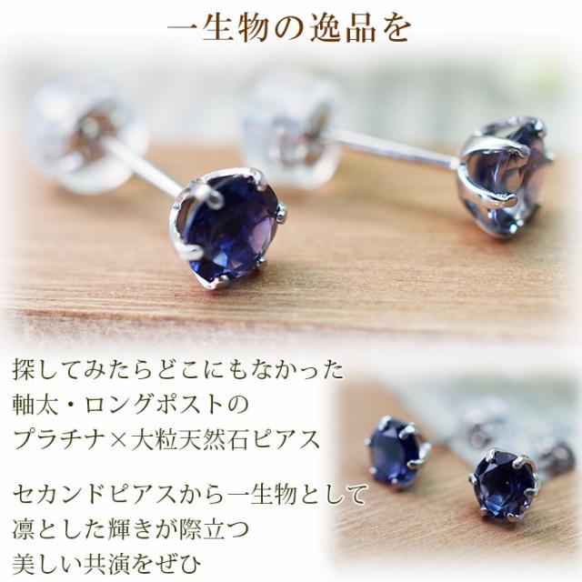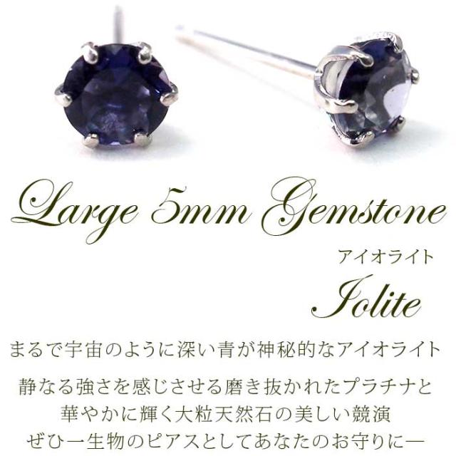 | セカンドピアス つけっぱなし プラチナ PT900 アイオライト 5mm 大粒 ピアス 金属アレルギー対応 軸太 ロングポスト 特針タイプ |