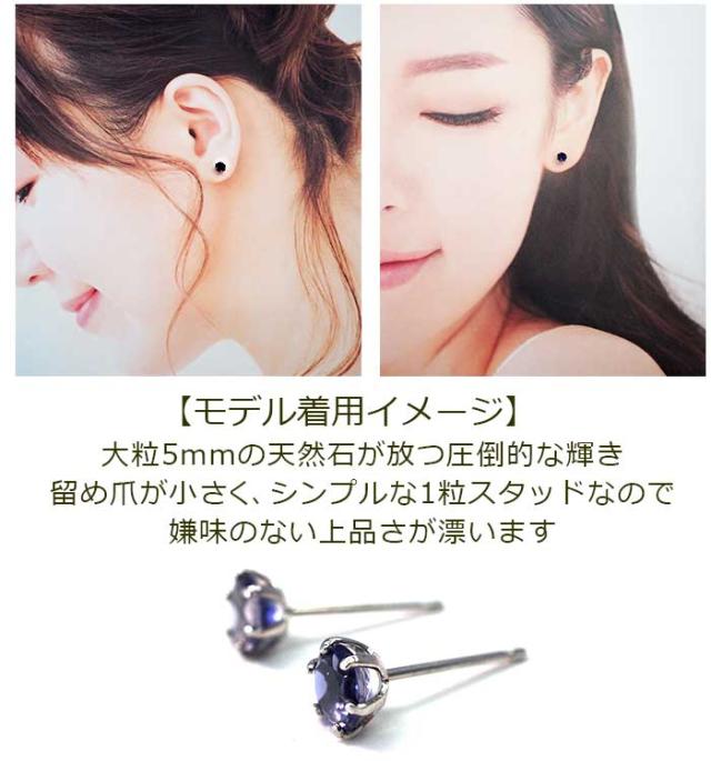 セカンドピアス つけっぱなし アイオライト 5mm プラチナ 特針 軸太0.8mm×長さ12mm 天然石 誕生石 日本製 【品質保証書つき】 ひと粒 ピアス レディース メンズ 1個ずつバラ売り