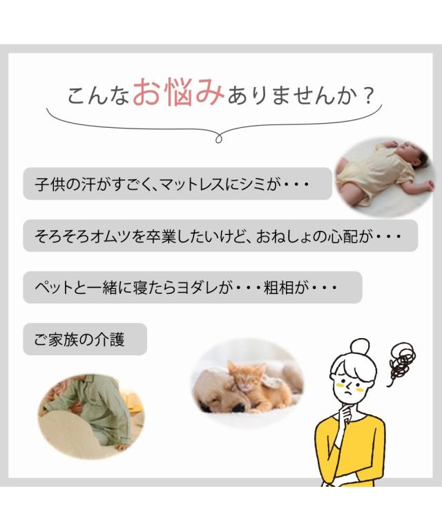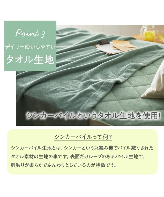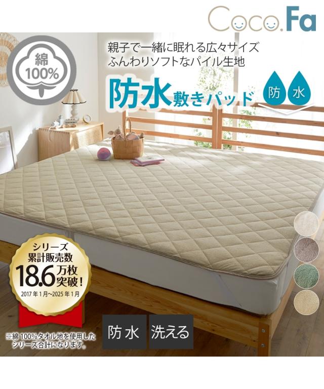 [keyword] インテリア 手洗いOK 洗える 洗濯 綿100% コットン100% 綿素材 綿 コットン 生地 タオル地 素材 吸水 無地 無地調 柄 かわいい おしゃれ シンプル ベーシック 定番 寝室 ベッドルーム オールシーズン 通年 春 夏 秋 冬 年中 一年間 一人暮らし 大学生 社会人 ワンルーム 1K 1DK 新生活 [comment] 大人気!綿100%タオル地素材の敷きパッドに防水タイプが登場!ふんわりパイルが柔らかく、綿100%だから優しく快適。裏面がポリウレタンコーティングされているので水を通さず、マットレスやお布団を守ります。お子様のおねしょ対策にも丁度良く、ペッドと一緒に寝ても安心です。洗えるタイプなのでいつも清潔に保てます。シングル2枚分の幅200cm(3人用)〜ダブルサイズ2枚分の幅280cm(5人用)まで選べます。1枚で2枚分!隙間がないのでつなぎ目が気になる方にもおすすめです。