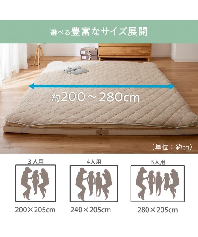 敷きパッド ファミリーサイズ 洗える 防水 綿100% タオル地 5人用 280cm