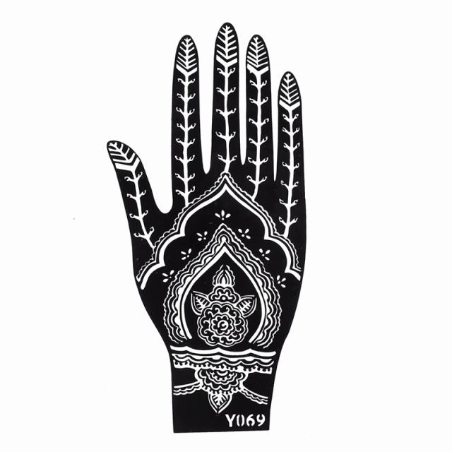 ステンシルシートステッカー / 和柄:マンダラ(No.Y069)片手用 ヘナタトゥー シール 貼る シール ボディーペイント タトゥ 入れ墨 入墨 刺青 トライバル 型 アート フェイクタトゥー 手の甲 ハンド 葉 フラワー エスニック 草 リーフ メンズ レディース 塗る グルー インク