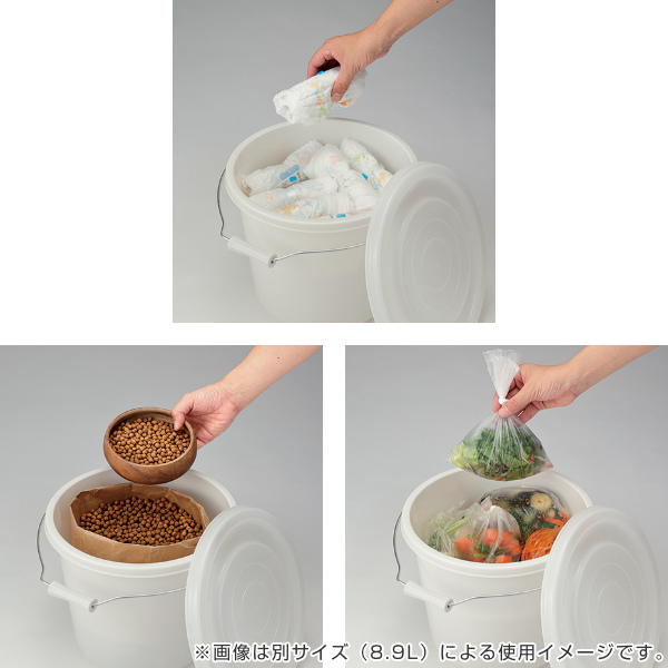 赤ちゃん用や介護用の使用済みおむつ入れ、においの気になるペットフードの保管、ゴミの日まで生ゴミを入れる一時的なゴミ箱として、様々な用途に合わせてお使いいただけます。