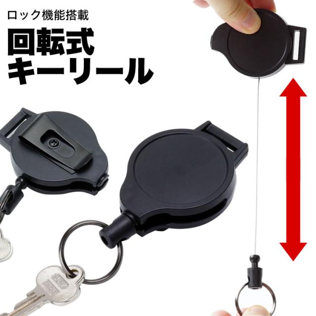 ロック式 キーリール 回転式 クリップ搭載 キーリング キーホルダー ホルダー リール 伸縮キーホルダー 落下防止 PR-SIDEREEL